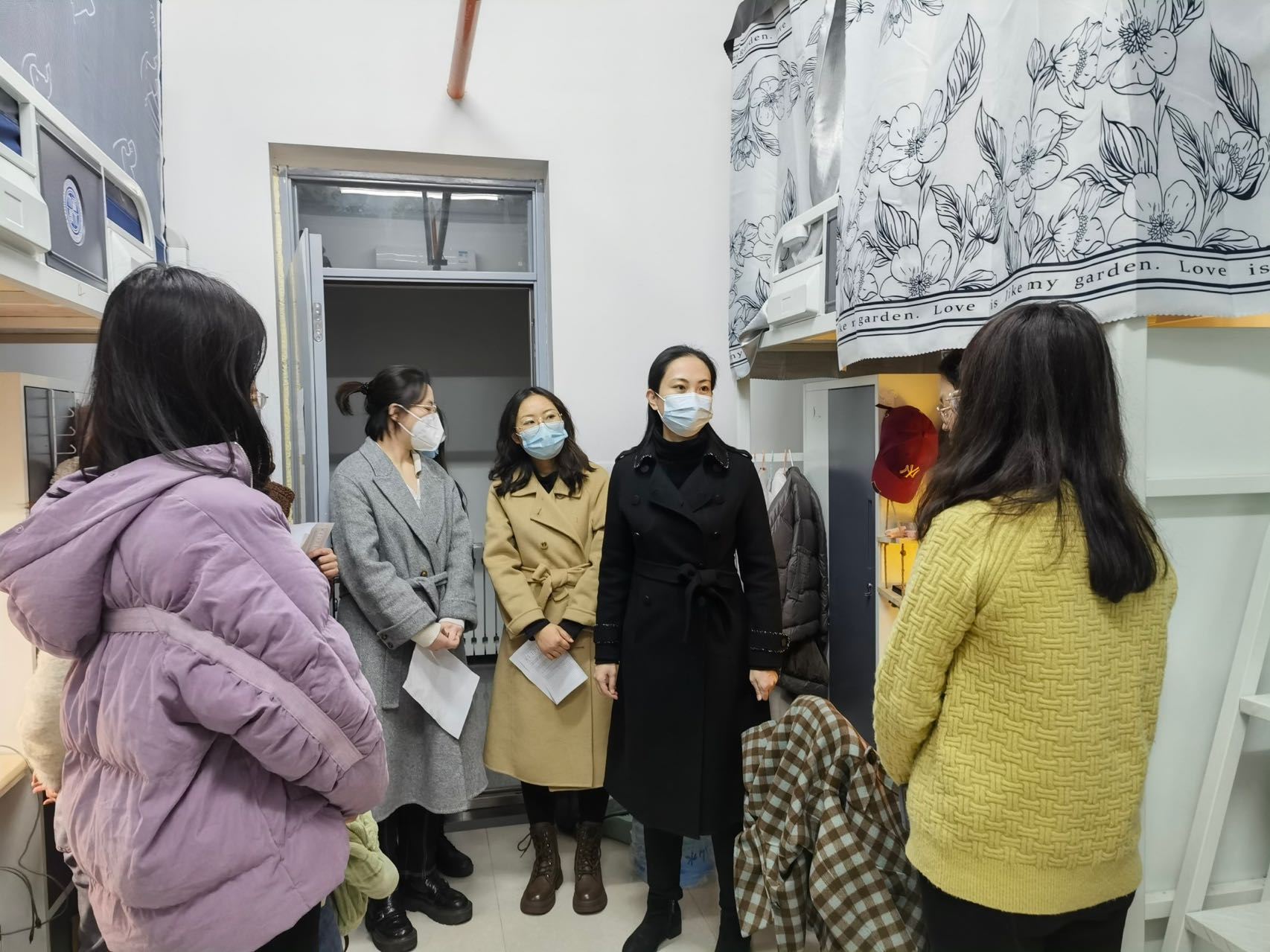 为进一步做好疫情防控期间学生安全教育管理,11月25日晚,院学生工作负责人邵平、辅导员刘娟一行走访学生宿舍,关心了解同学们的学习、生活情况。