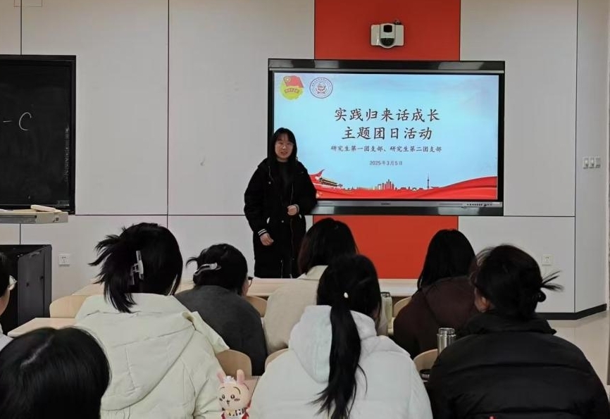活动伊始,张典向同学们汇报了团支部参与寒假社会实践活动的情况。首先,她详细介绍了寒假社会实践活动的队伍立项情况、活动内容以及实际开展效果。紧接着,她强调了社会实践对提升同学们综合素质的重要性。最后,她向大家发出倡议,希望大家将寒假社会实践中的热情与责任延续到日常生活中,用实际行动践行青春誓言。