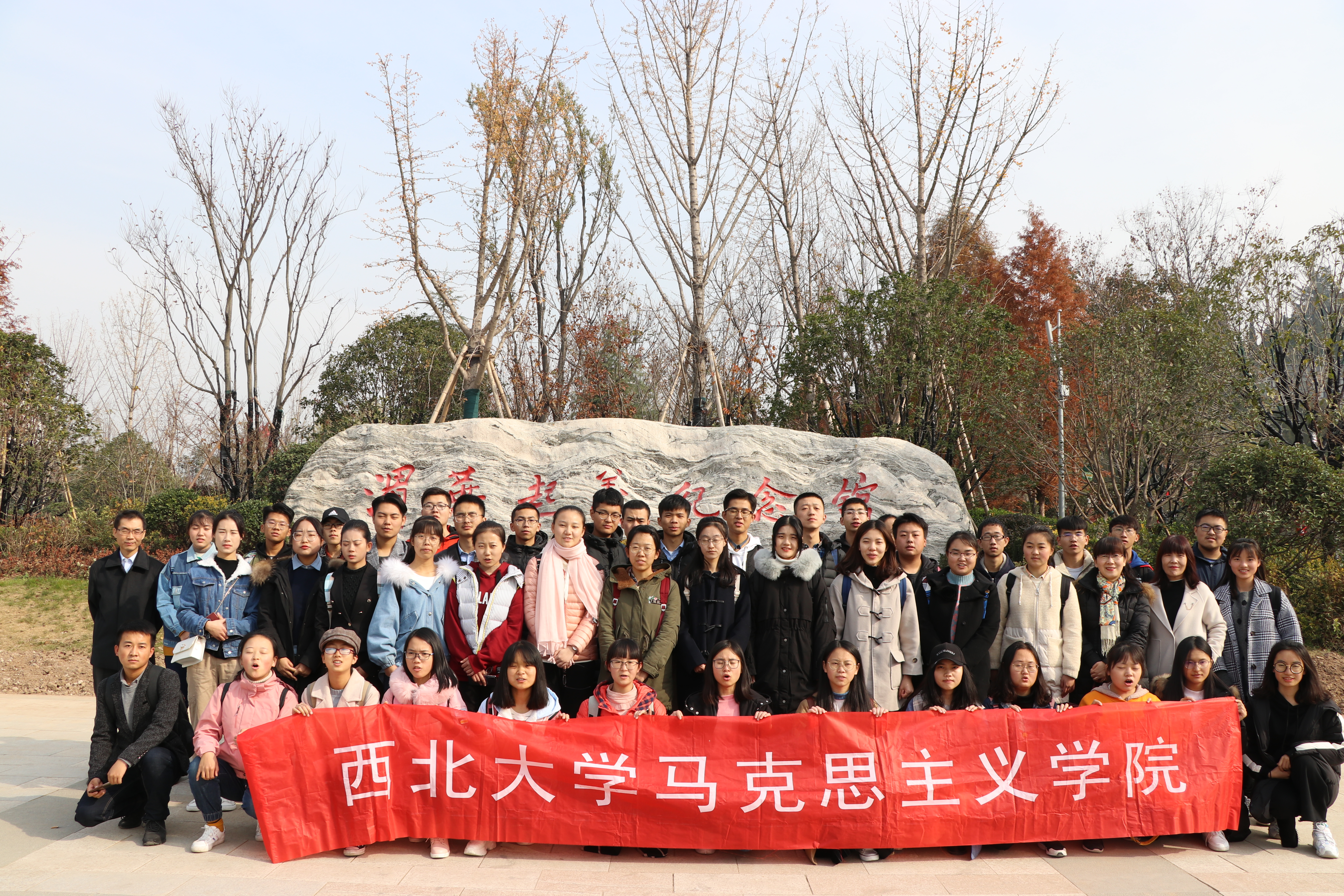 为全面贯彻落实全国教育大会精神,进一步丰富和创新新时期、新形势下思想政治理论课教学模式,增强思想政治理论课的针对性、亲和力、实效性,马克思主义学院组织中国近现代史纲要教研部教师及全校2018级本科生代表共计49人,于2018年11月24日赴渭华起义纪念地开展实践教学活动。