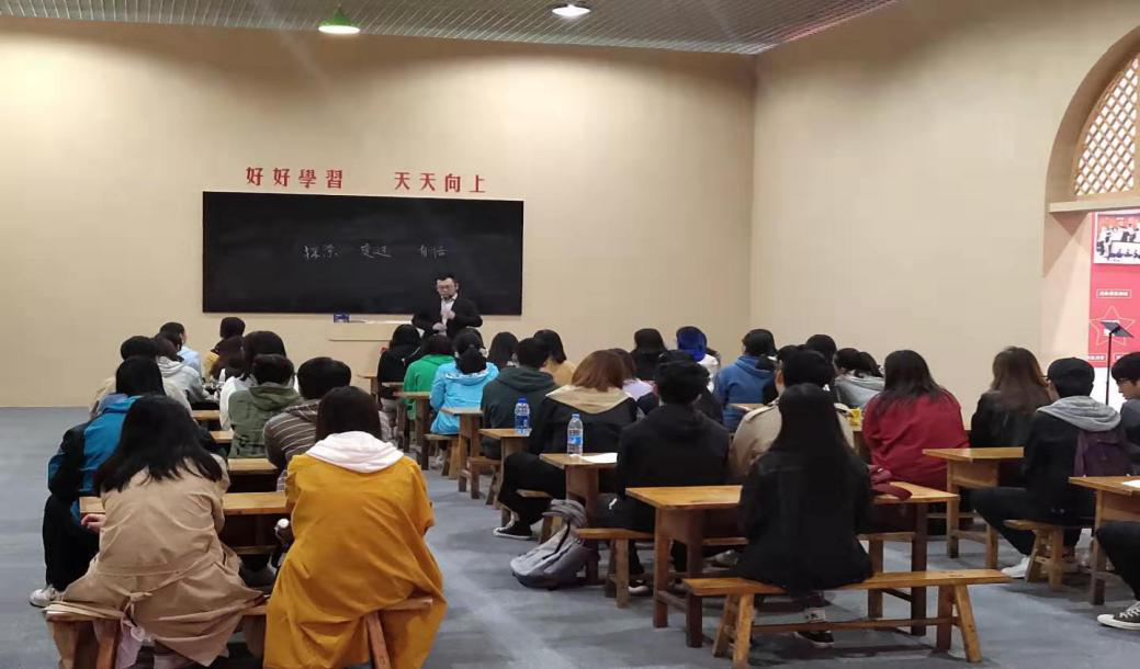 2019年10月14日,我校2018级40名本科生在马克思主义学院赵沛副教授的带领下,赴曲江国际会展中心参观了“辉煌壮丽七十年 追赶超越再出发——陕西省庆祝中华人民共和国成立70周年成就展”,并在展馆内公开讲授了一节题为“探索 变迁 自信”的思政课。