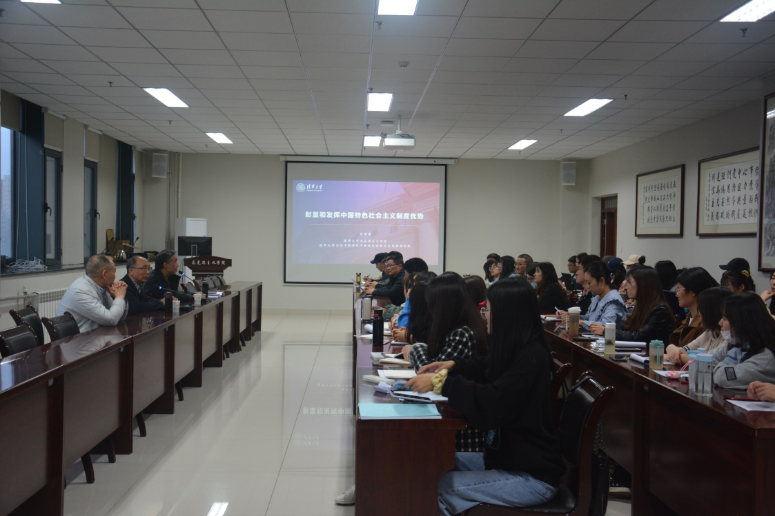 2021年4月17日,在长安校区西学楼北1105马克思主义学院学术报告厅,清华大学习近平新时代中国特色社会主义思想研究院常务副院长肖贵清教授应邀做客我校名家讲坛系列报告,为我院师生带来了题为《彰显和发挥中国特色社会主义制度优势》的主题报告,报告由我院副院长李建森教授主持。